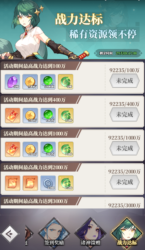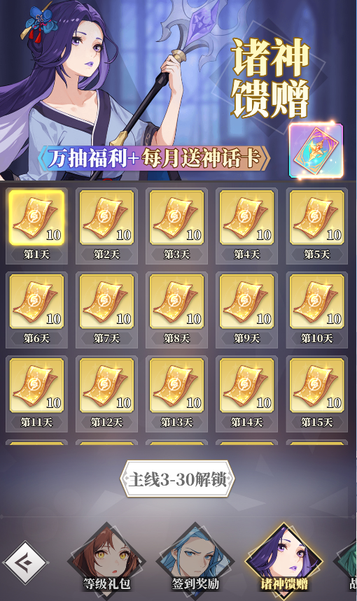 2.在線資源多多,新玩家在線30分鐘可免費(fèi)獲得靈玉*100、隨機(jī)五星神靈*1、SSR卡自選包*1、請(qǐng)神符*10以及若干材料。