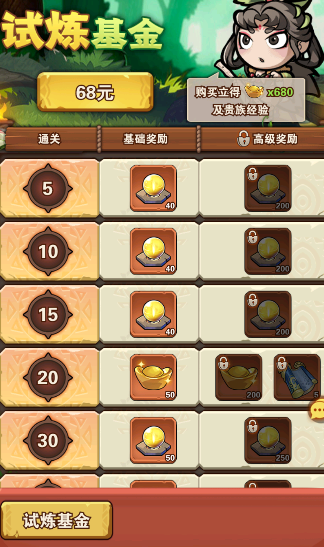 3,試煉之塔,可獲取銅幣進(jìn)階石和武將經(jīng)驗,闖關(guān)越高獲取的材料越多,建議購買試煉基金,試煉基金送的材料以及招募卷和元寶還是很劃算的