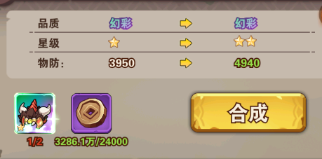 ⑵合成:相同的品質(zhì)星級,2件就能合成1件高品階的;裝備可在家園系統(tǒng)打造里面煉器與合成;高品質(zhì)裝備也能通過活動購買獲得。