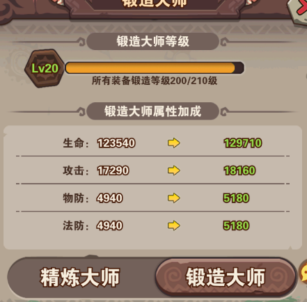 ⑷鍛造:需要鐵礦來強(qiáng)化裝備,也可跟精煉礦一樣在歷練(過關(guān)戰(zhàn)將)獲得,也可在52級的天命商店購買,氪老可以在福利禮包購買;鍛造大師是所有強(qiáng)化裝備的總等級,達(dá)到也能提升屬性。