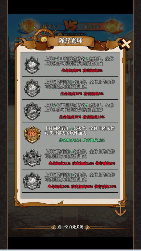 玩家需巧妙構(gòu)建戰(zhàn)斗陣容,依據(jù)不同戰(zhàn)局靈活調(diào)配角色,憑借策略與絕技征服對手,享受燒腦且激爽的戰(zhàn)斗快感。隊伍中可以編入6名角色,角色有4種陣營和4種定位。陣營分為世界政府、新星團(tuán)、大海賊、海軍和五皇;定位分為輔助、肉盾、輸出、控制。陣營之間沒有克制效果,會根據(jù)上陣中同陣營的英雄數(shù)量獲得傳說之力的加成。戰(zhàn)斗的攻擊順序是根據(jù)在布陣的站位1-6號進(jìn)行,雙方一號角色會優(yōu)先行動以此類推,可以根據(jù)你隊伍中6名角色的定位設(shè)置合理的排陣出手順序。