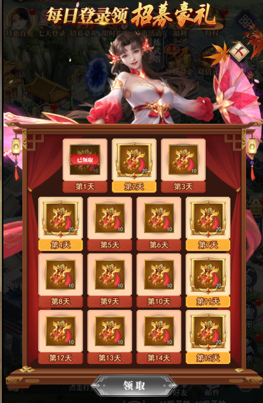 3、每日簽到和每月簽到領(lǐng)取大量元寶和英雄、招募令等豪禮