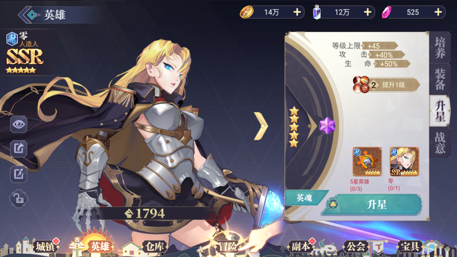 升14星,要1個(gè)9星,2個(gè)10星,1個(gè)9星本體,90本圣星紋書,累計(jì)消耗440個(gè)5星,其中14個(gè)本體;