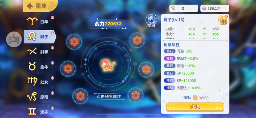 挑戰(zhàn)難度越高,獲得的星方和星象秘語也就越多,星方用來升級星座等級,星象秘語用來點化星座屬性。