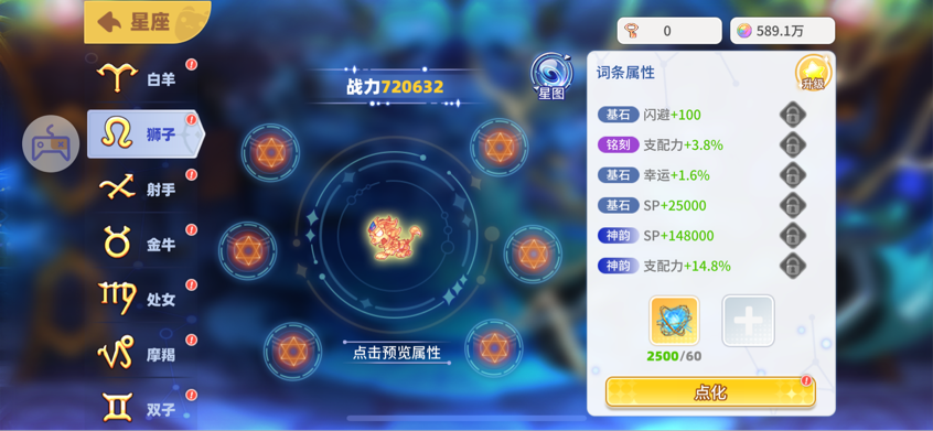 點化建議大家星座等級到15級了再去點化,這樣比較節(jié)省星象秘語哦!同時每個星座的第一個詞條就是最好的屬性詞條,如果大家點化到了就可以及時收手咯(大佬忽略)